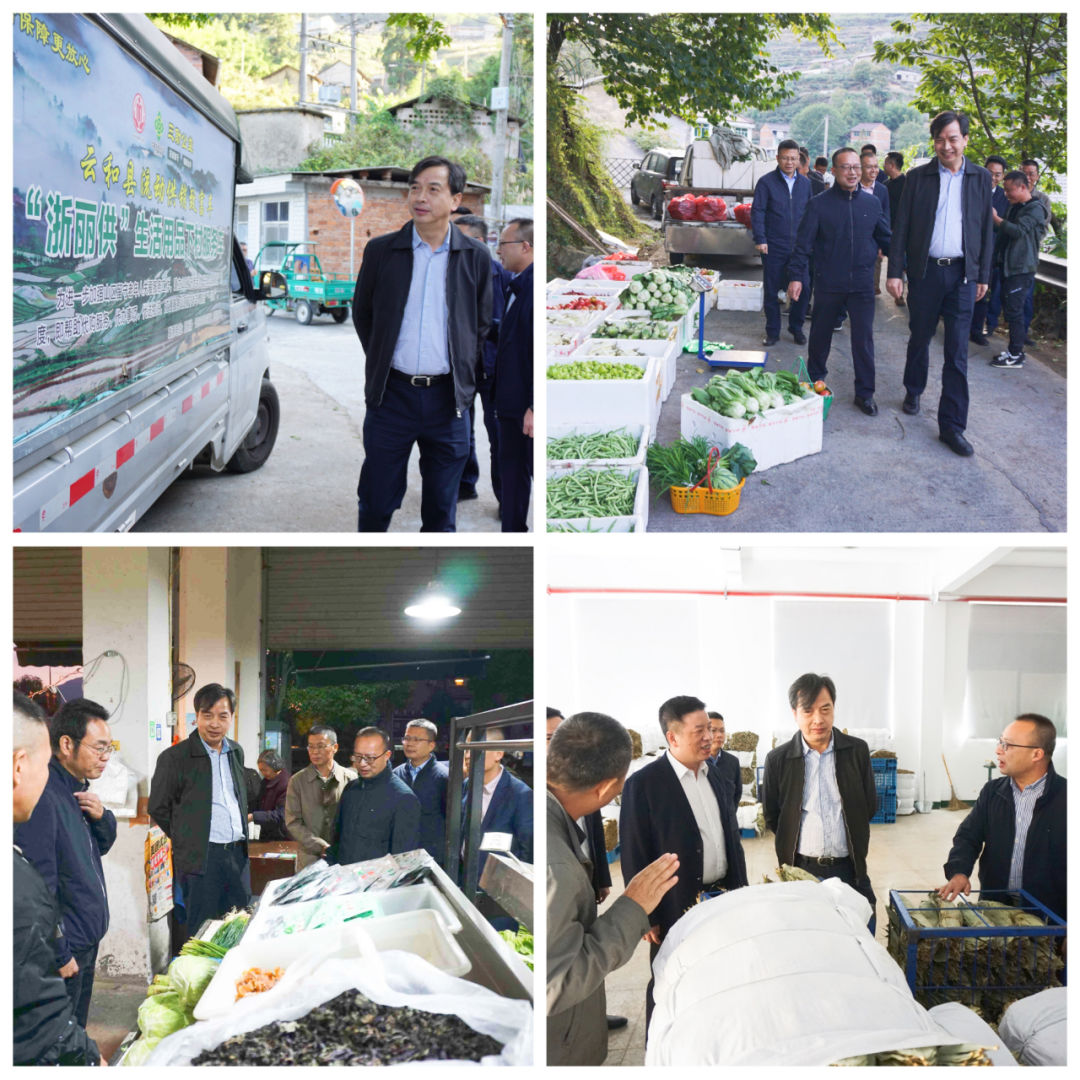 在丽水,陈利江实地考察了莲都区供销社“共享冰箱”市行政中心直销点、云和县崇头镇叶垟村“浙丽销”高山农产品收购点及县城直销点、遂昌县浙南箬叶市场,并通过数字化应用场景详细了解丽水市175辆流动供销致富车服务及运行情况。